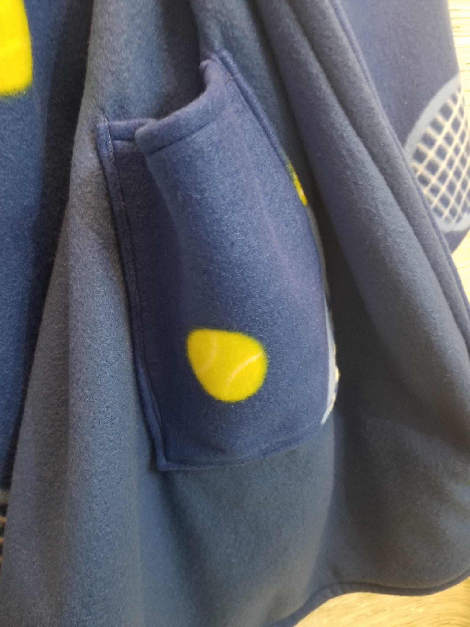 A double layer of fleece with pockets inside. Very warm. Machine wash and dry.