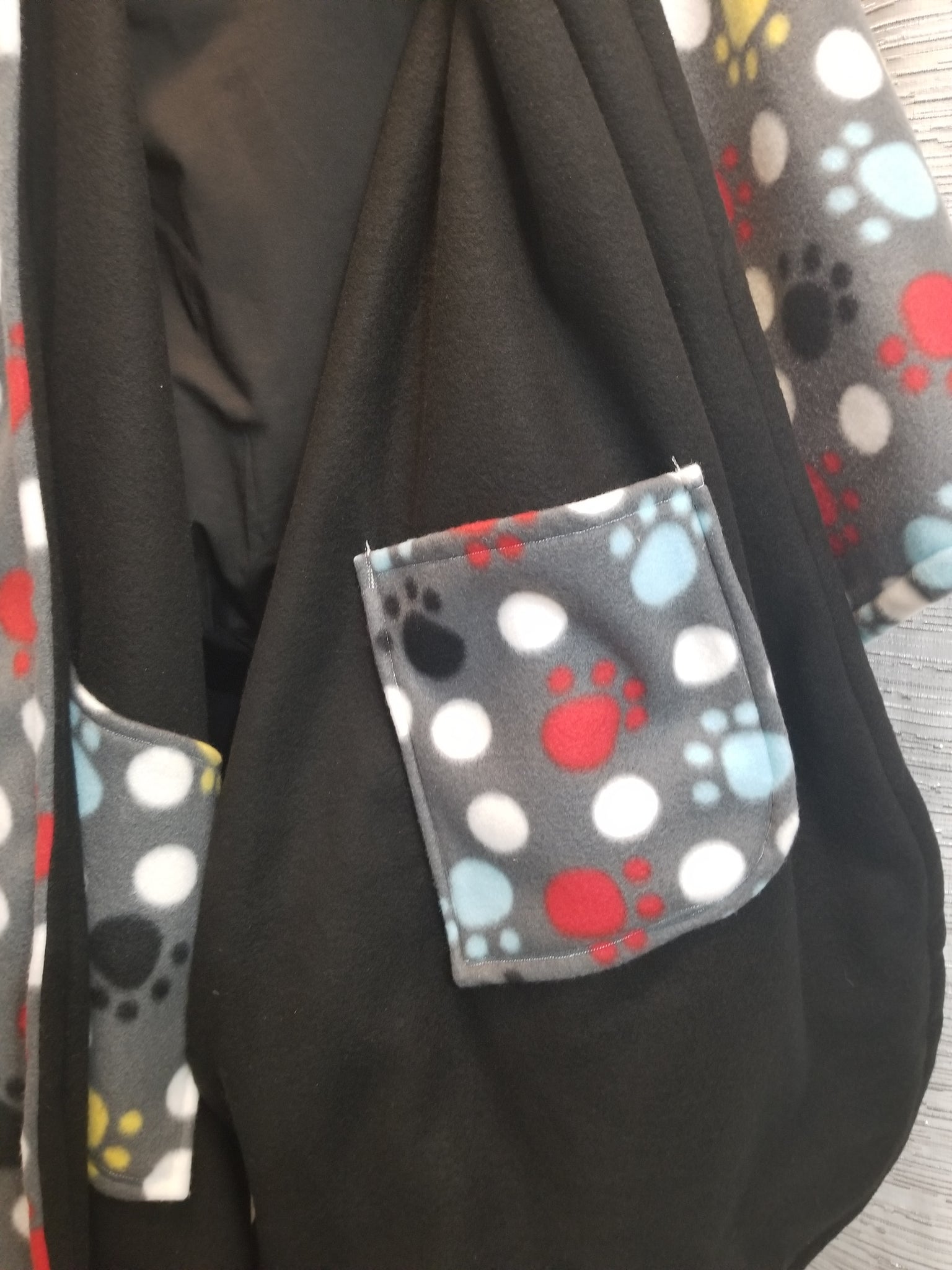 A double layer of fleece with pockets inside. Very warm. Machine wash and dry.